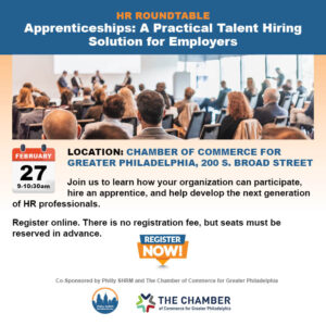 Employers, discover a powerful new talent pipeline through the Human Resources Registered Apprenticeship (HR RAP) now coming to Philadelphia after strong success nationwide. This initiative connects employers with motivated Opportunity Youth ages 18–24 for an 18‑month full‑time HR apprenticeship designed to build entry‑level HR talent from the ground up. Apprentices receive SHRM Essentials training, SHRM‑CP exam preparation, and career‑readiness support to ensure they contribute value to your organization from day one.